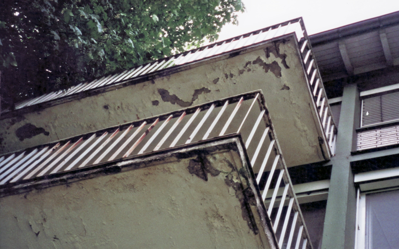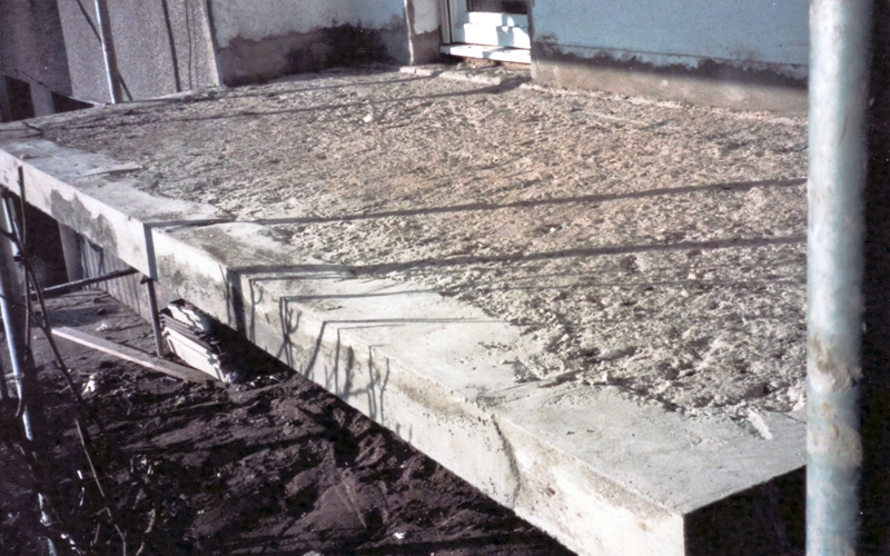 Die Kragplatten der Balkone waren durch Carbonatisierungseinflüsse so stark geschädigt, das teilweise bis zu 20 % der gesamten Kragplatte abgebrochen werden mußten.